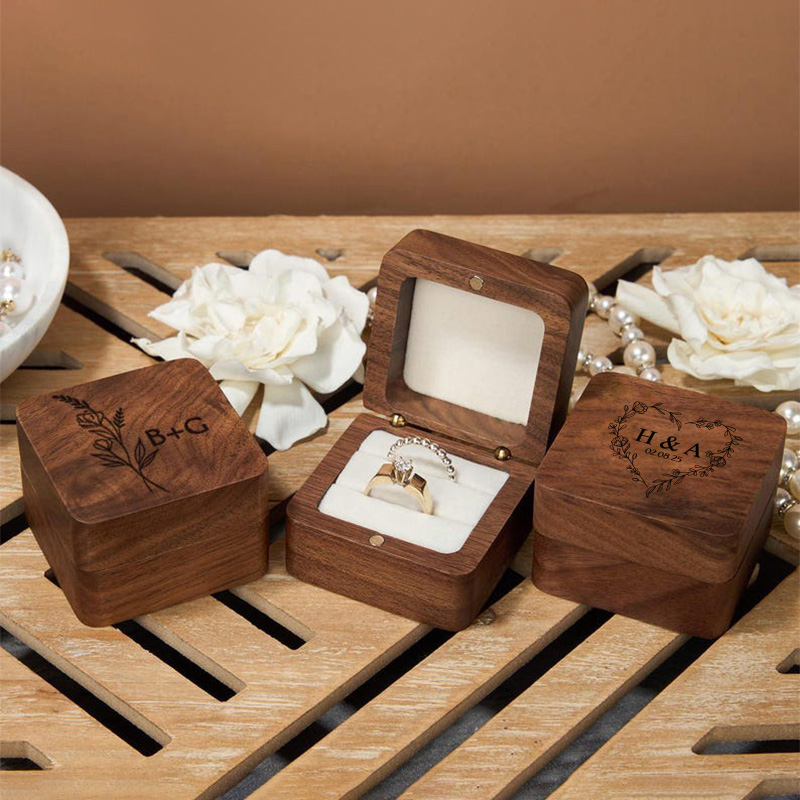 Personalized Wooden Wedding Ring Box, Custom Engraved Engagement Proposal Holder, Bridal Gift For Her, Engrave Ring Box, Wooden Ring Box