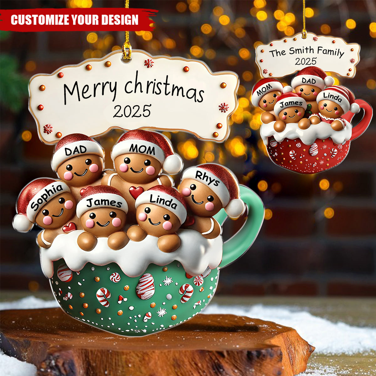 Custom Gingerbread Letter With Name For Family, Kids - Personalized Family Wood Ornament, Christmas Stocking Tag, Name Ornament