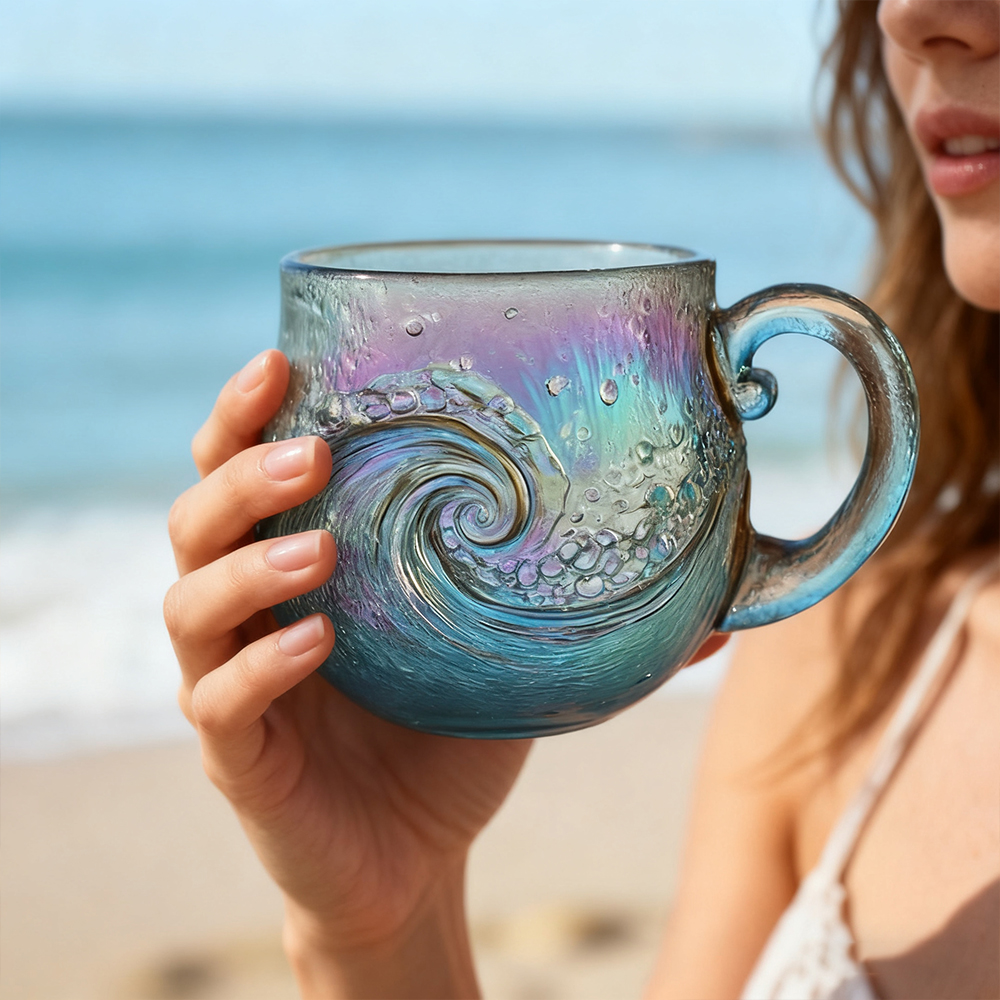Sunset & Ocean Legend Glass Cup – Handcrafted 12oz Ocean-Inspired Drinkware, Artistic Beach Style Tumbler