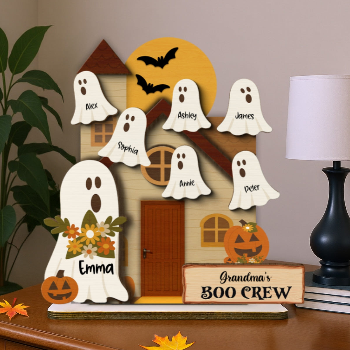Grandma's Boo Crew Halloween Tiered Tray Decor Personalized 2-Layer Standing Wooden Plaque