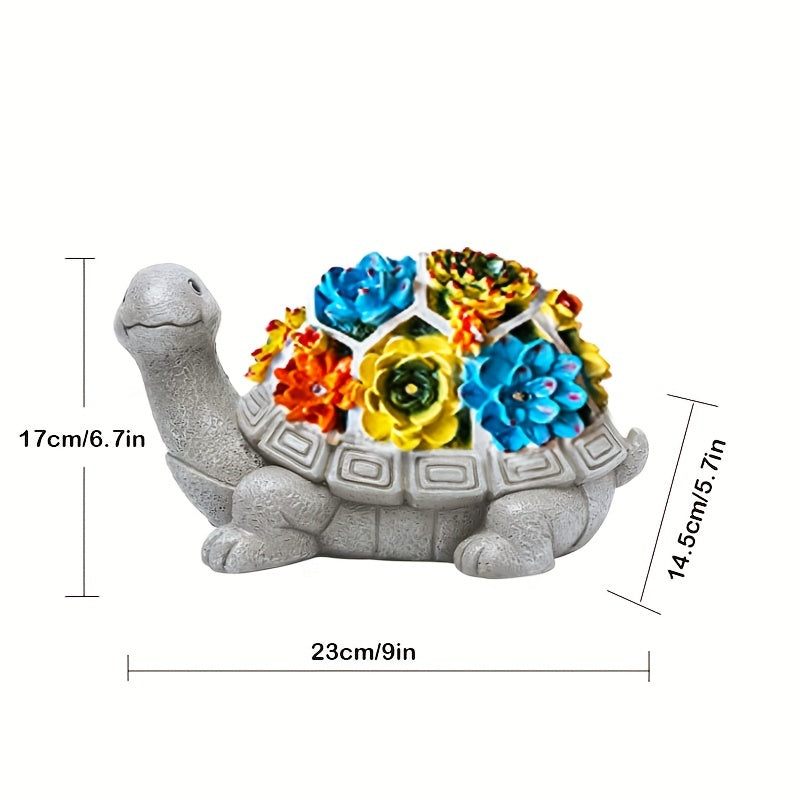 Illuminate your evenings with the gentle glow of this solar-powered turtle, featuring stunning succulent flowers that illuminate your garden with eco-friendly charm after dusk.