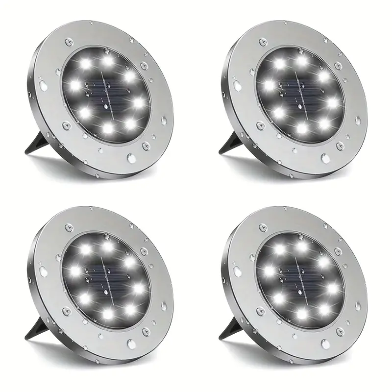 【Higher Solar Energy Efficiency】solar in-ground lights have built-in 600mAh batteries; each light has 8 LEDs. The light can provide lighting at night for about 6-10 hours after fully charged by 6-8 hours solar energy during daytime.